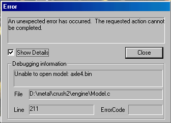 [ Too many errors ]     [ Texture messages ]     [ Model errors ]     [ Traxx errors ]