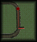 (keep button depressed) to move the red circle up to the end of the first straight.